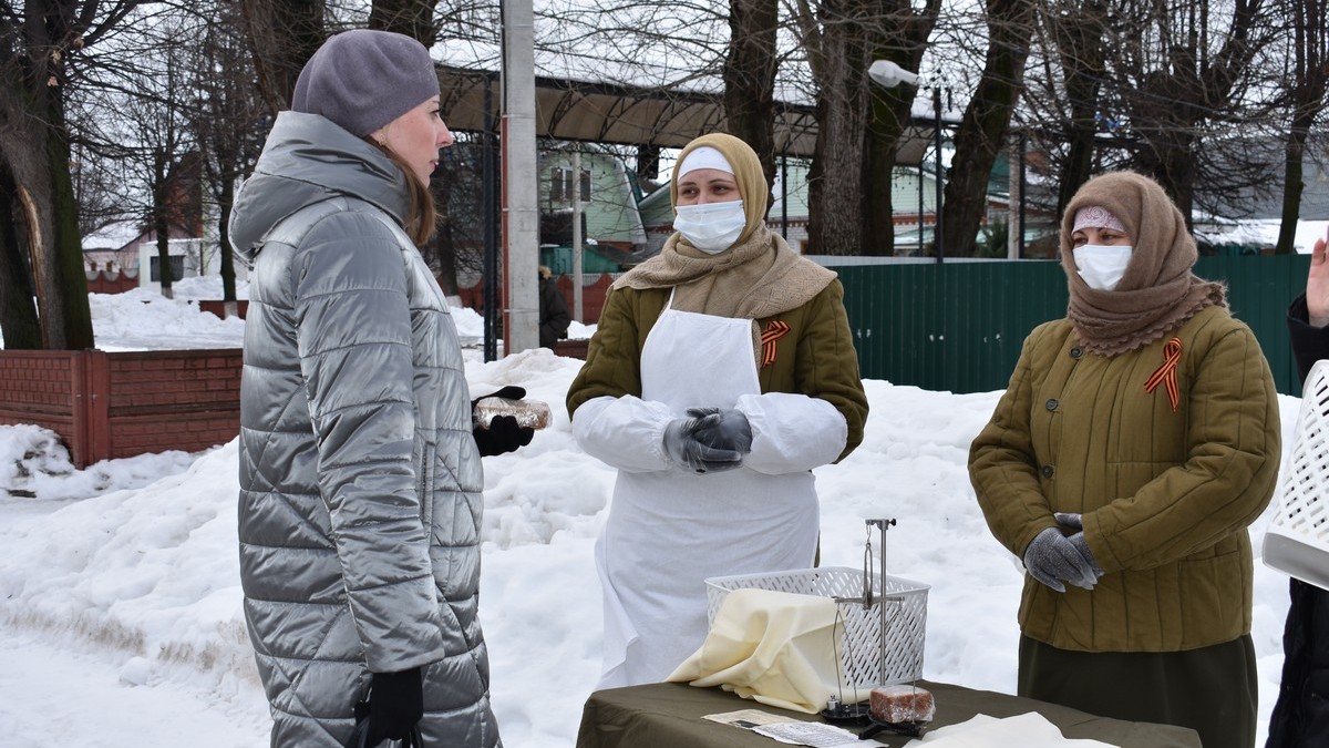 27 января в Рыбновском районе поддержали всероссийскую акцию «Блокадный хлеб». В центре Рыбного, на площади Ленина, работники Музея обороны и тыла совместно с сотрудниками управления образования и молодежной политики раздавали жителям кусочки хлеба по 125 граммов – суточную норму в блокаду для детей и неработающих ленинградцев.