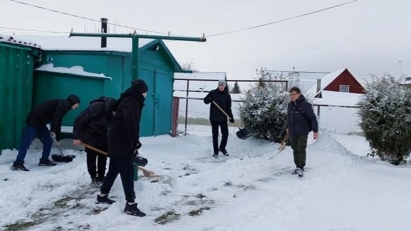 А субботу, после сильного снегопада, мы снова позвонили мамам, проводившим своих сыновей в учебные центры. Предложили им помощь в расчистке снега. Они были очень благодарны студентам-волонтерам группы 521. Ребята расчистили дворы, дорожки к гаражам и сараям».