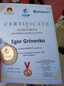 Ученик Екимовской школы, десятиклассник Егор Гриненко стал бронзовым призером международной олимпиады по географии, прошедшей 24–30 июня в Белграде (Сербия). Чтобы добиться столь впечатляющих результатов, нужно не только блестяще знать географию. Необходимо отлично владеть английским языком, на котором составили все задания олимпиады.