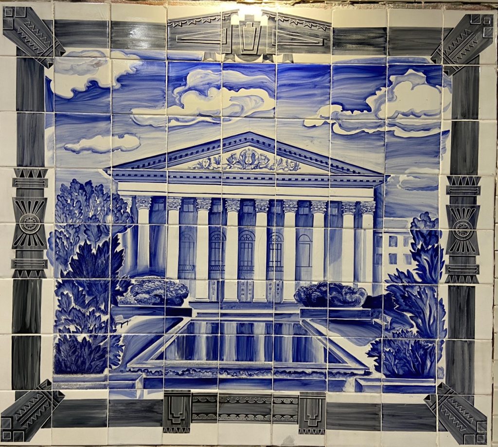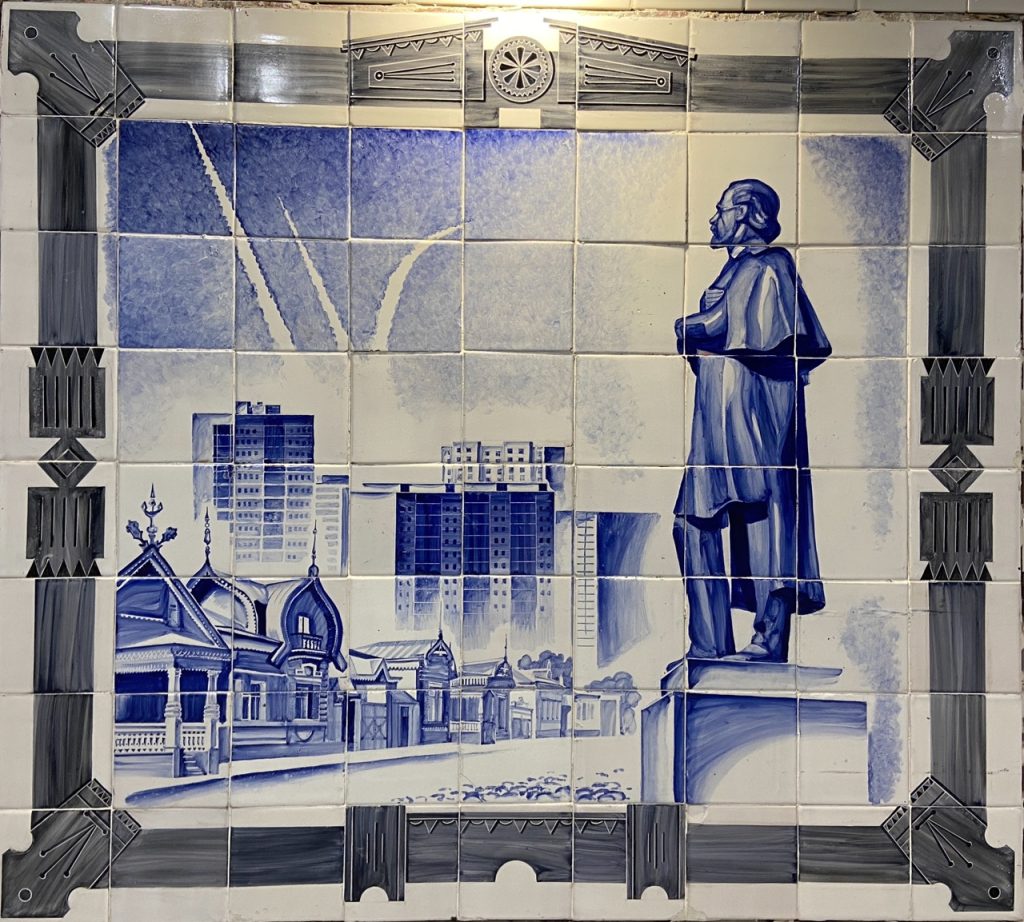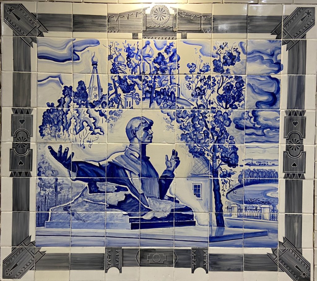 «Отреставрировала 12 панно в подземном переходе у «Барса»» в Рязани. 12 штук! В кратчайшие сроки! Было очень тяжело, но все получилось. Большие панно нарисованы на кафельных плитках методом надглазурной росписи. На панно было много отверстий от шурупов и саморезов, а также очень много сколов и надписей красками. Утраченные надо было нарисовать заново. Поврежденные – отреставрировать на месте. Новых плиток я нарисовала 13 штук, в том числе портреты Ивана Павлова и Владимира Ленина.