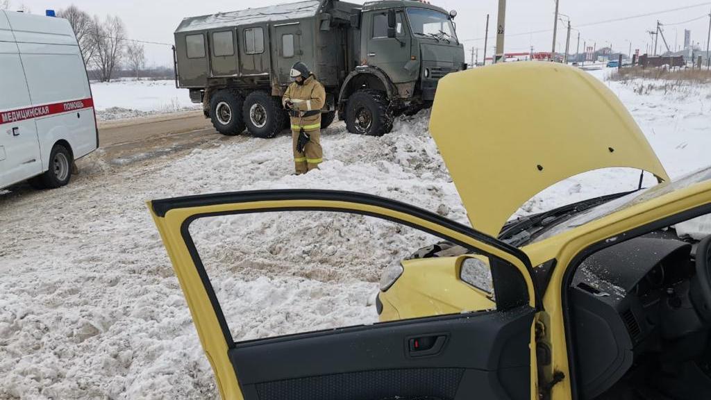 15 января в 14.40 произошла страшная авария в районе деревни Дубровичи Рязансккого района. Там столкнулись военный КамАЗ и Hyundai.