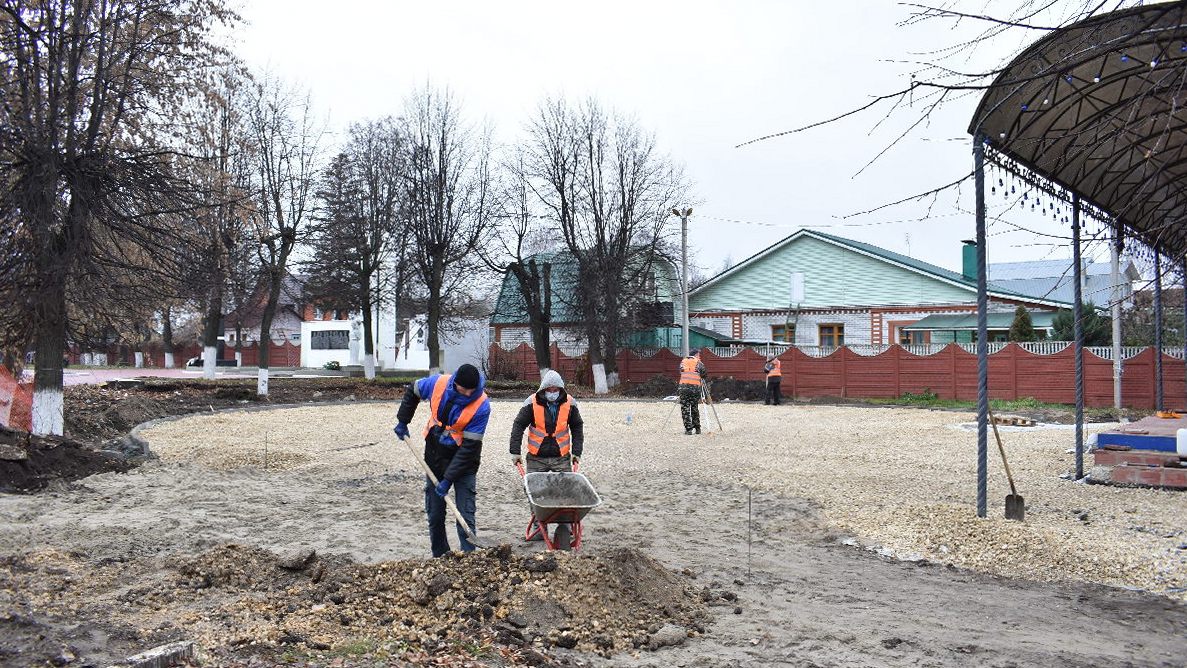 В Рыбном по федеральному проекту благоустраивают площадь Ленина и пруд на улице Веселой