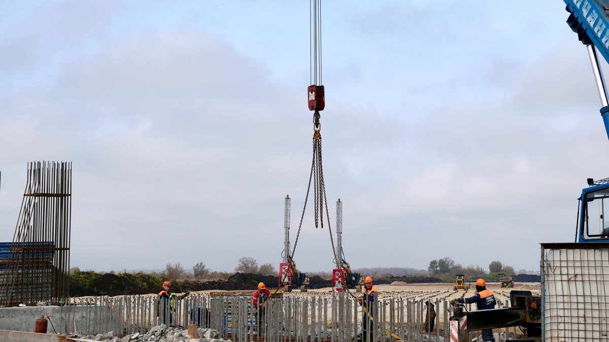 На стройплощадке моста через Оку ведется погружение свай