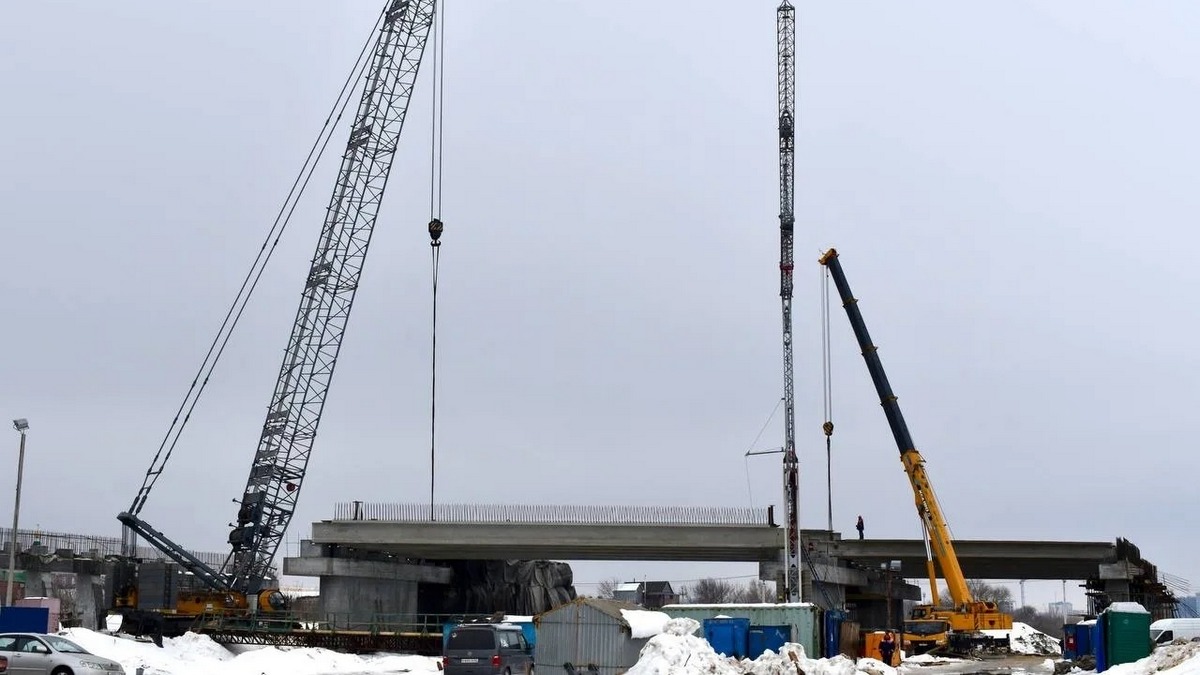 В Рязанском районе завершили монтаж пролетного строения путепровода нового моста через Оку
