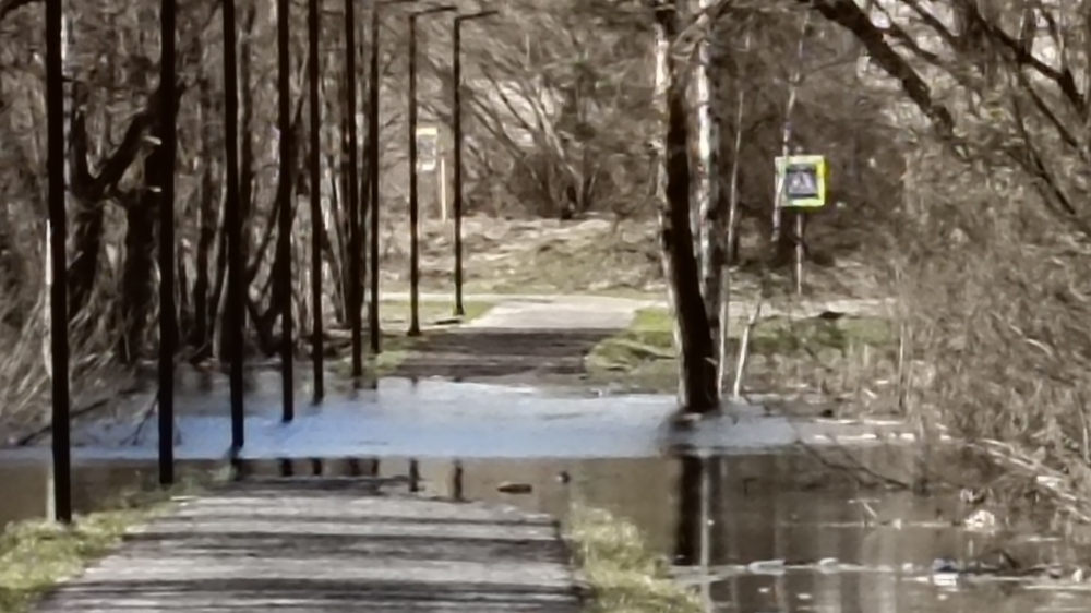 Разлившаяся Пра затопила пешеходную дорожку в Спас-Клепиках