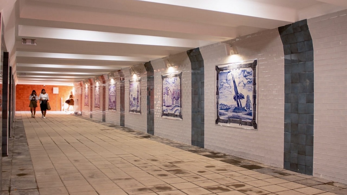 Скопинка Дарья Катунина отреставрировала двенадцать панно в переходе у торгового дома «Барс» в Рязани