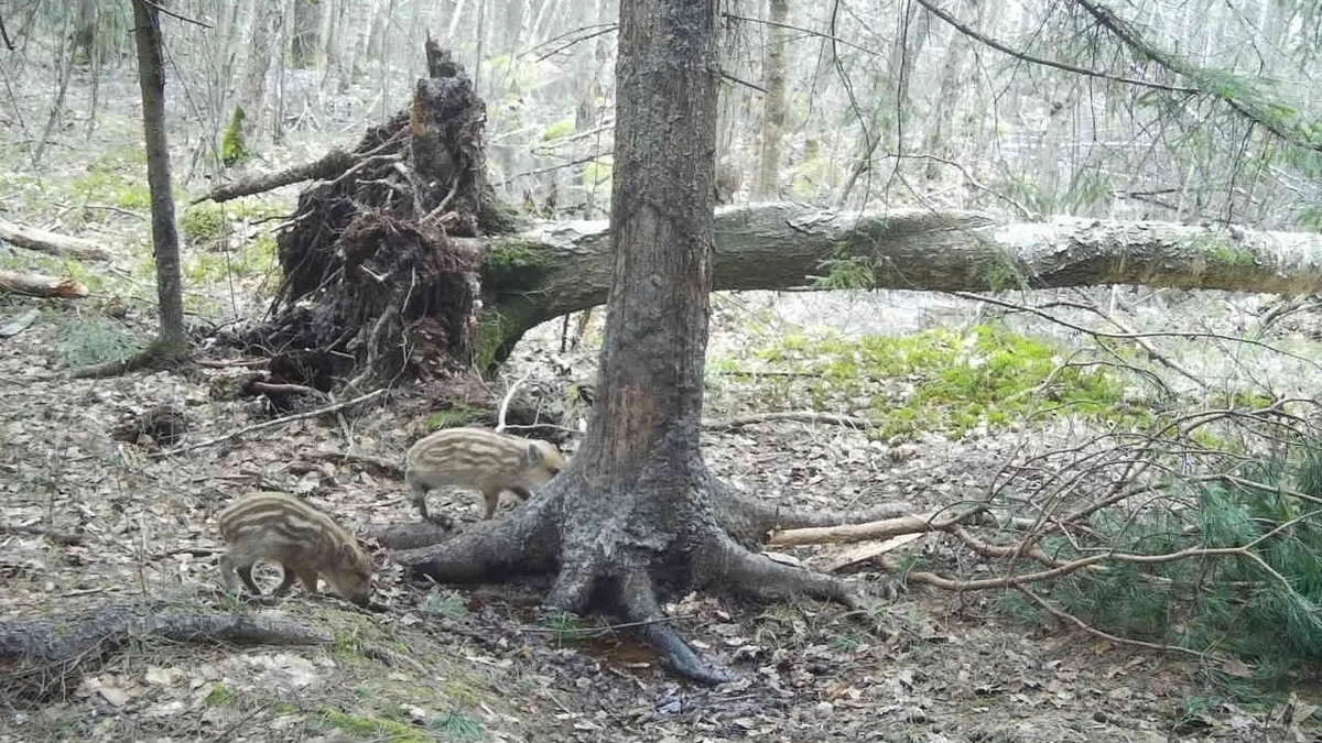 В Окском заповеднике на камеру попали кабанята