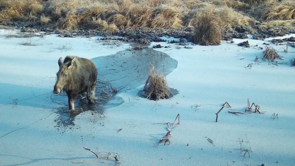 В Окском заповеднике сфотографировали лося и лисицу на тонком льду