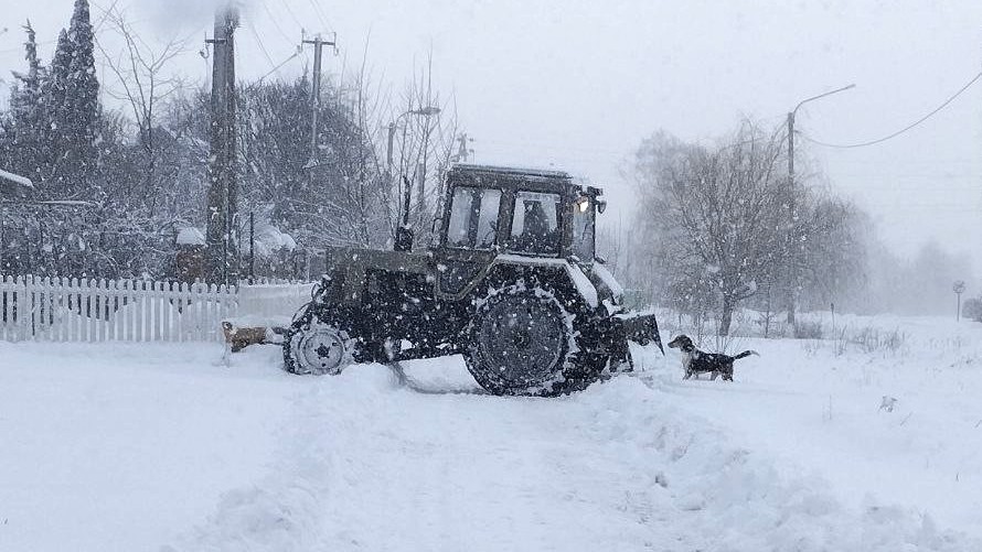 В Пронском округе дворы и улицы чистит тракторный отряд