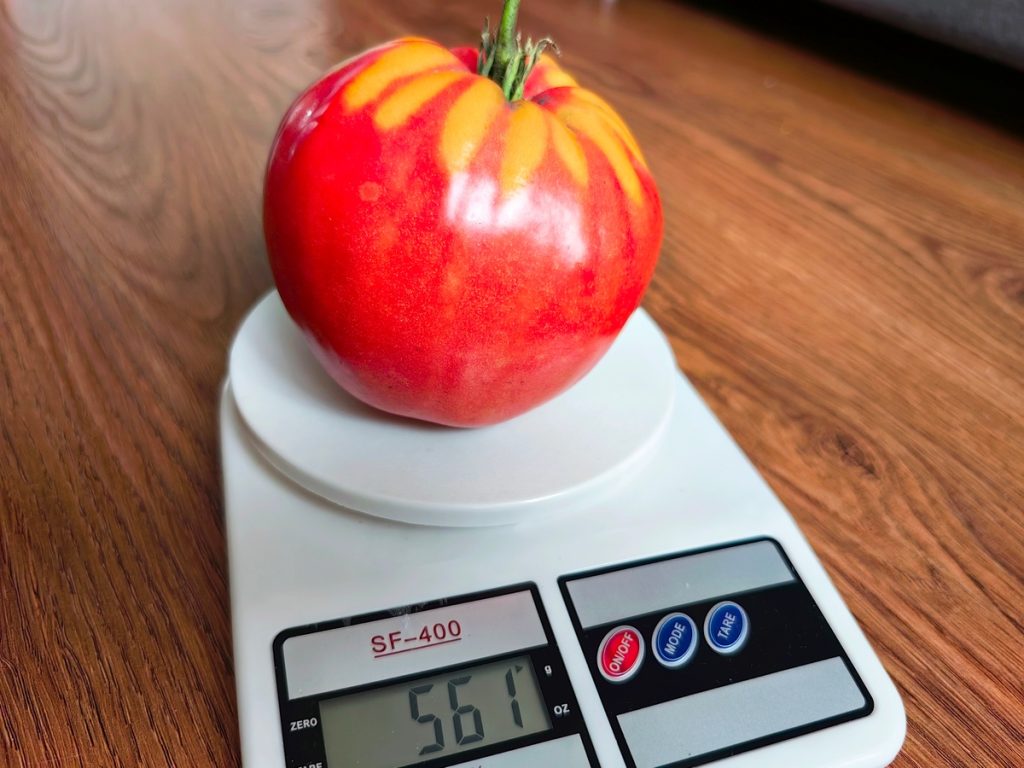В теплице Зои Буртасовой из села Захарово вырос томат весом 561 грамм сорта «сто пудов». Примечательно, что ветка, на которой созрел гигант не обломилась.
