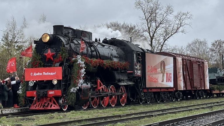 Поезд делает по всей Горьковской железной дороге 30 остановок, на которых проходят торжественные встречи и праздничные концерты. Ведут состав два легендарных паровоза серии «Л» времен Великой Отечественной войны. На его платформах – образцы военной техники: легендарные танк Т-34, пушка, артиллерийская установка «Катюша», вагоны-теплушки с полевой кухней.