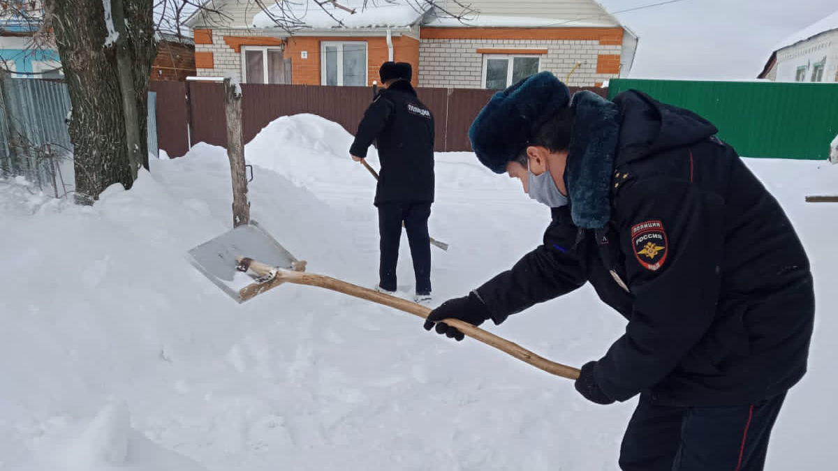 Участковый из Рязанского района помогает труженице тыла чистить снег