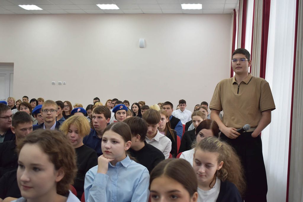 31 октября в Кораблинской школе имени Сарычева города Кораблино участник первого потока региональной кадровой программы «Герои62» Николай Гринько прочитал лекцию «Человек и Цифровая Россия: быть гражданином единой страны и жить разумно в мире технологий».