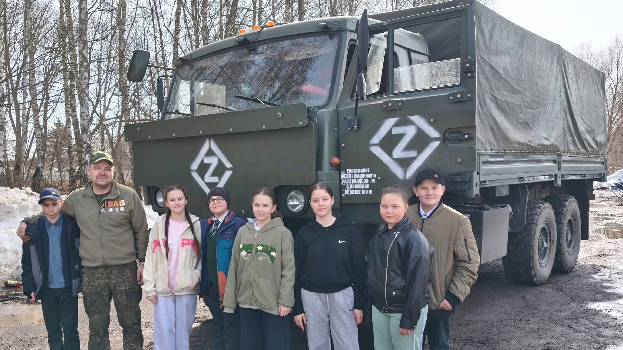 К ученикам Безлыченской школы Захаровского округа на военной машине, оснащенной спецзащитой, приехал участник СВО Андрей Музалев, который доставляет гуманитарную помощь в зону специальной военной операции. Он рассказал про автомобиль, разрешил посидеть в кабине.