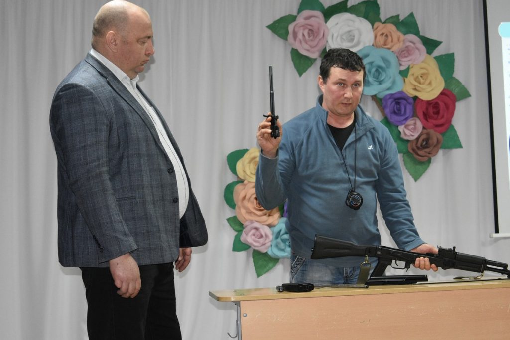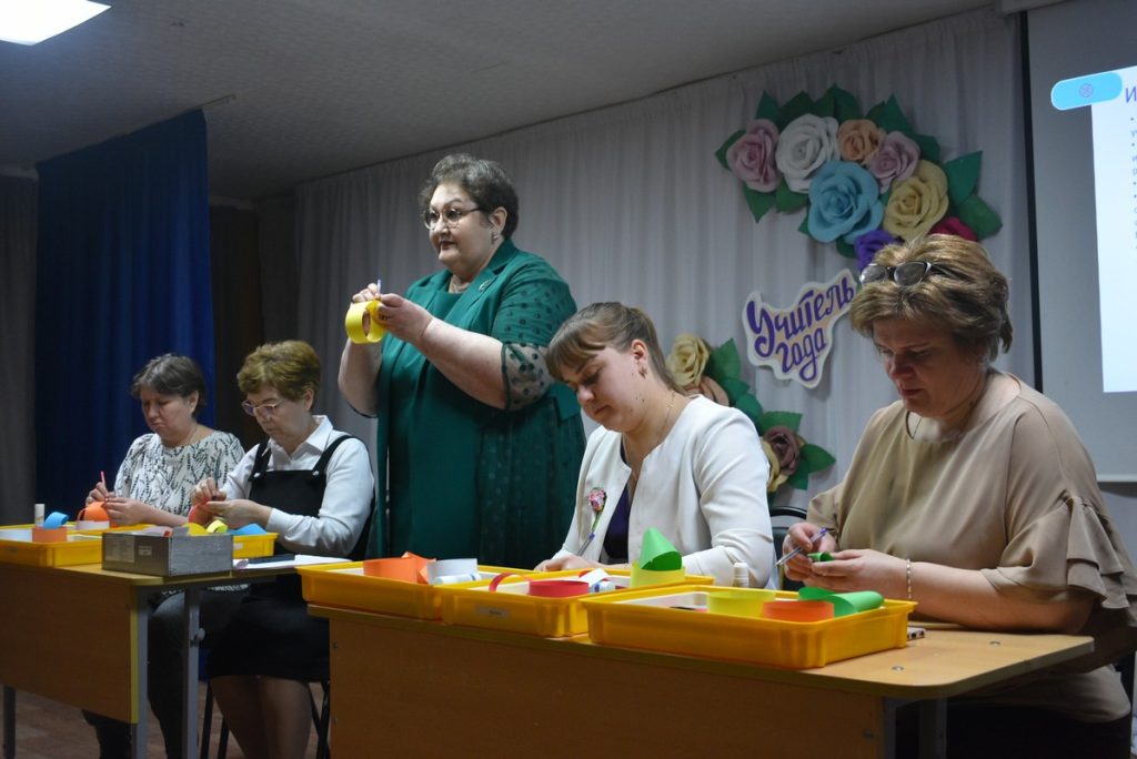 Учитель физической культуры Песоченской школы Евгения Николаевна на своем мастер-классе показала элементы строевой подготовки. Учитель ОБЗР из Карабухинской школы Иван Валентинович наглядно продемонстрировал сборку и разборку автомата. Учитель математики Путятинской школы Светлана Михайловна рассказала о секретах листа Мебиуса. Вместе со своими помощниками и членами жюри они вырезали его из бумаги.