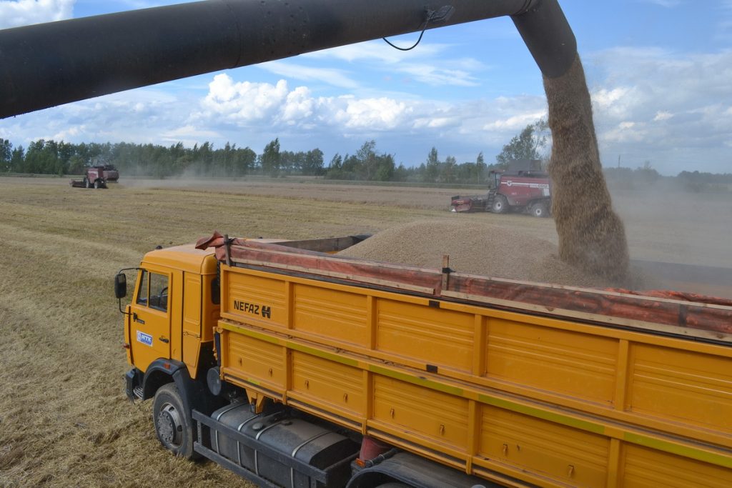 По словам Дмитрия Коваленко, сегодня обмолот ячменя ведут 14 зерноуборочных комбайнов. На отвозке зерна с поля на производственную площадку хозяйства заняты девять КаМАЗов с прицепами.