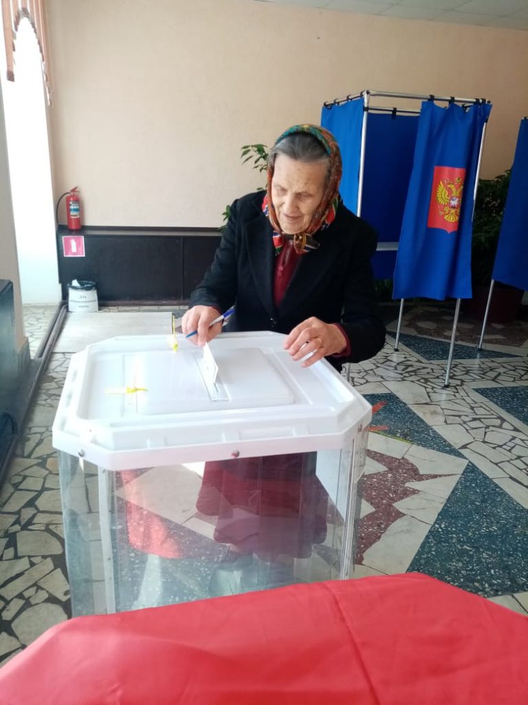 Голосовала на дому 98-летняя жительница Плахина Нина Бонова. Нина Степановна, несмотря на возраст, всегда активно участвует в выборах, следит за ситуацией, знает кандидатов и политические партии.