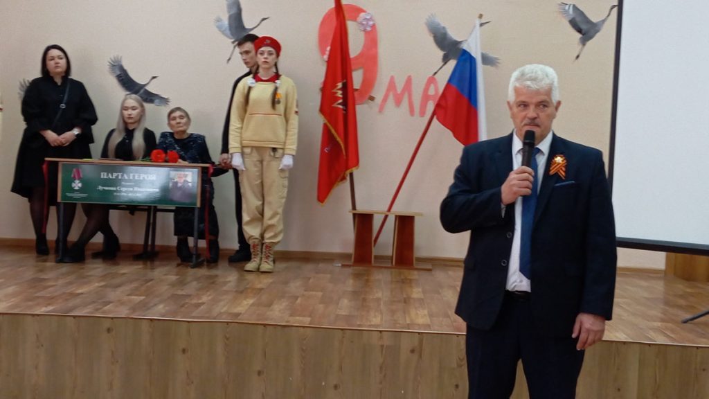 В актовом зале собрались ученики, представители местной власти и ветеранских организаций. Среди почетных гостей мама Сергея Анастасия Ивановна, жена Инна, дочь и сын погибшего, родственники. На сцене возле парты Героя выставили почетный караул юнармейцев.