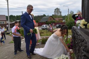 Но главным событием, безусловно, стало бракосочетание двух молодых пар, которые решили узаконить свои отношения в этот праздничный день. Перед росписью их величали по русскому обычаю, а после – молодожены возложили букеты ромашек к памятнику благоверным Петру и Февронии Муромским, прося у покровителей семьи счастья и благополучия.