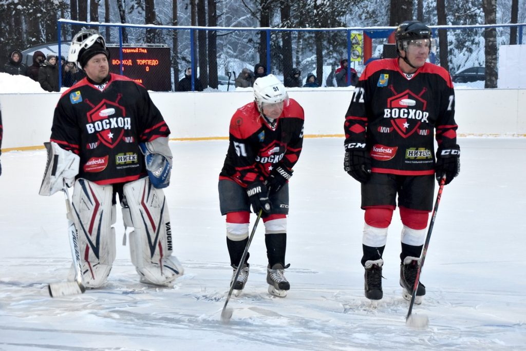 На льду были команды Касимова и Скопина – «Восход 50+» и «Торпедо 50+» соответственно. Для зрителей организовали фотозону и конкурсы.
