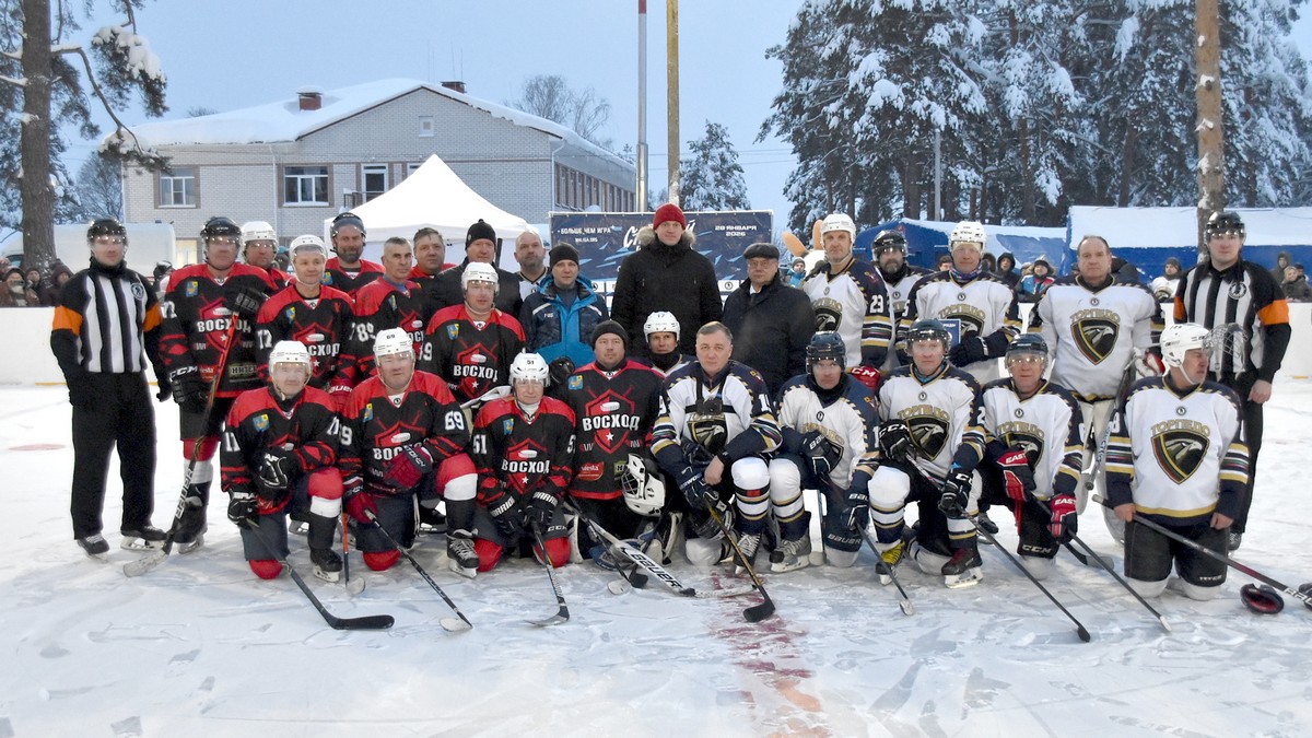 В деревне Клетино на обновленной хоккейной площадке прошел первый матч