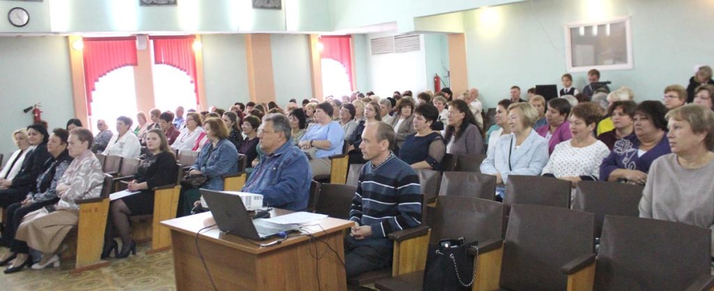 Об итогах прошедшего учебного года и задачах на новый говорила Валентина Ожерельева, начальник УО и МП. Елена Митина, председатель областной организации профсоюза работников образования, познакомила присутствующих с задачами организации и мерами защиты учителей. Педагоги школ в своих выступлениях говорили о патриотическом воспитании, обучении в Точках роста, технологии обучения слабоуспевающих и неуспевающих детей, сопровождении профессионального самоопределения школьников.