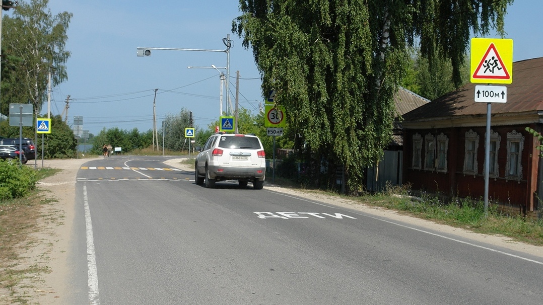 Нерегулируемый пешеходный переход оснастили элементами повышения безопасности дорожного движения. К нему подвели электроосвещение, установили дублирующие знаки «Пешеходный переход» со световой индикацией, искусственные неровности.