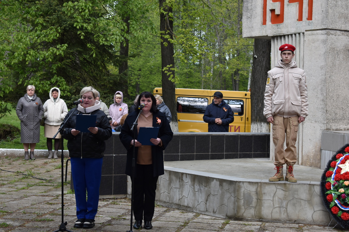 «В 1945 году мы одержали победу благодаря нашей сплоченности, нашей вере в то, что победа будет за нами. Пять лет войны унесли более 25 миллионов жизней. Мы гордимся тем, что мы выстояли. Сейчас в нашем районе только два ветерана Великой Отечественной войны: Николай Максимович Моржавиков и Анна Ивановна Мишина. Им – особые слова благодарности и низкий поклон».