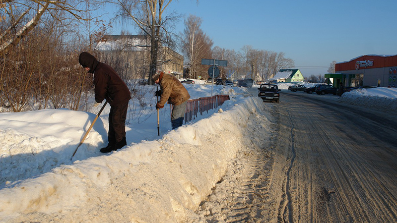 В Ермиши продолжают расчищать мосты и тротуары
