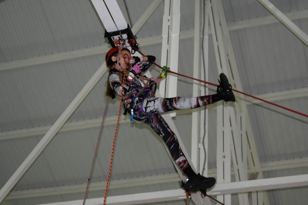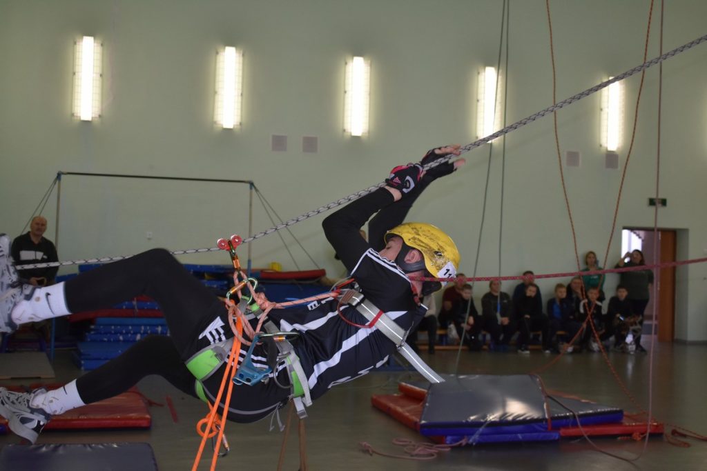 Спортсмены преодолели дистанции 2 и 3 класса сложности. Ребята прошли наклонную переправу, в том числе с наведением спусковых перил, подъем по скалодрому и по вертикальным перилам. Помимо собственного веса, ребята удерживали на себе нелегкое снаряжение: верхнюю и нижнюю альпинистскую обвязку, множество карабинов и спусковое устройство. Каска обязательна, без нее на дистанцию не допустят. Безопасность участников обеспечивали страховщики.