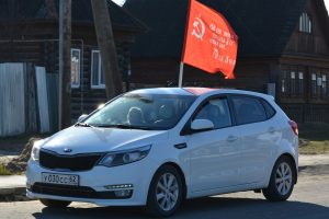 Колонна машин, украшенных флагами Российской Федерации, проехала по поселку и двинулась в сторону села Енкаево, расположенного в 15 км от Кадома. Встречные машины приветствовали колонну клаксонами, некоторые присоединялись к движению.