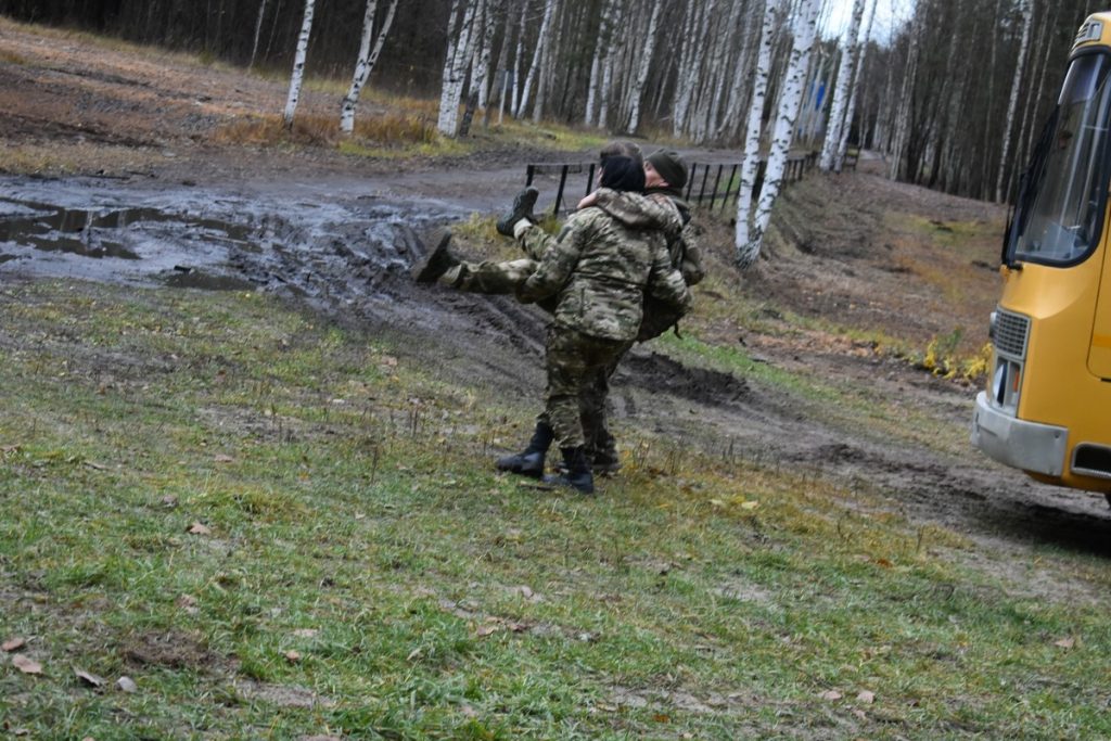 Самым насыщенным оказался второй день сборов, когда участникам предстоял полевой выход – марш-бросок по пересеченной местности на пять километров. В пути их ждали ориентирование на местности, засады, разведвыходы, стычки с условным противником, перевязки и перенос раненых. Все полученные теоретические знания отрабатывали на практике. Девчонки шли наравне с мальчишками, старшие курсанты помогали младшим.