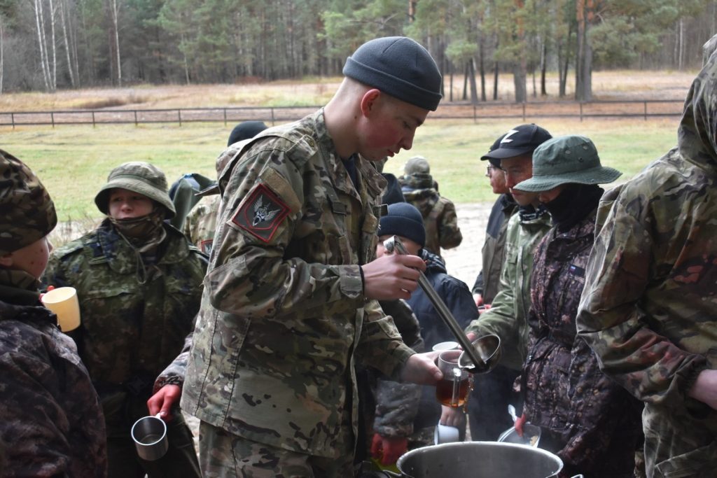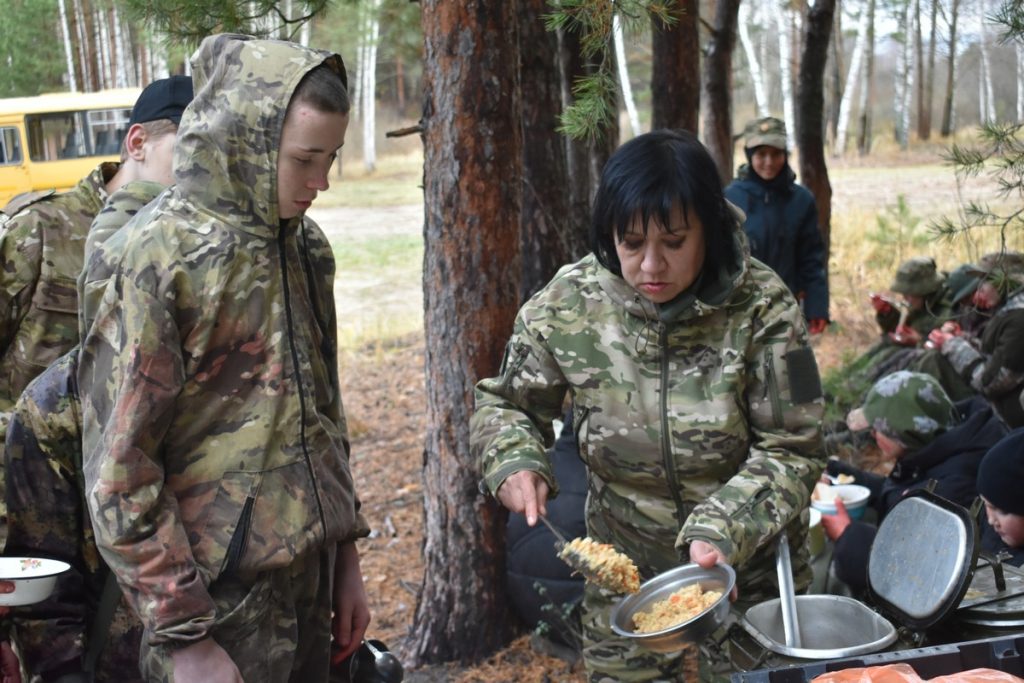 На привале ребят ждала полевая кухня. А после вкусного обеда – вновь построение и шагом марш отрабатывать другие приемы: как не заблудиться, смастерить жилье в лесу из подручных материалов, развести костер и многое другое.