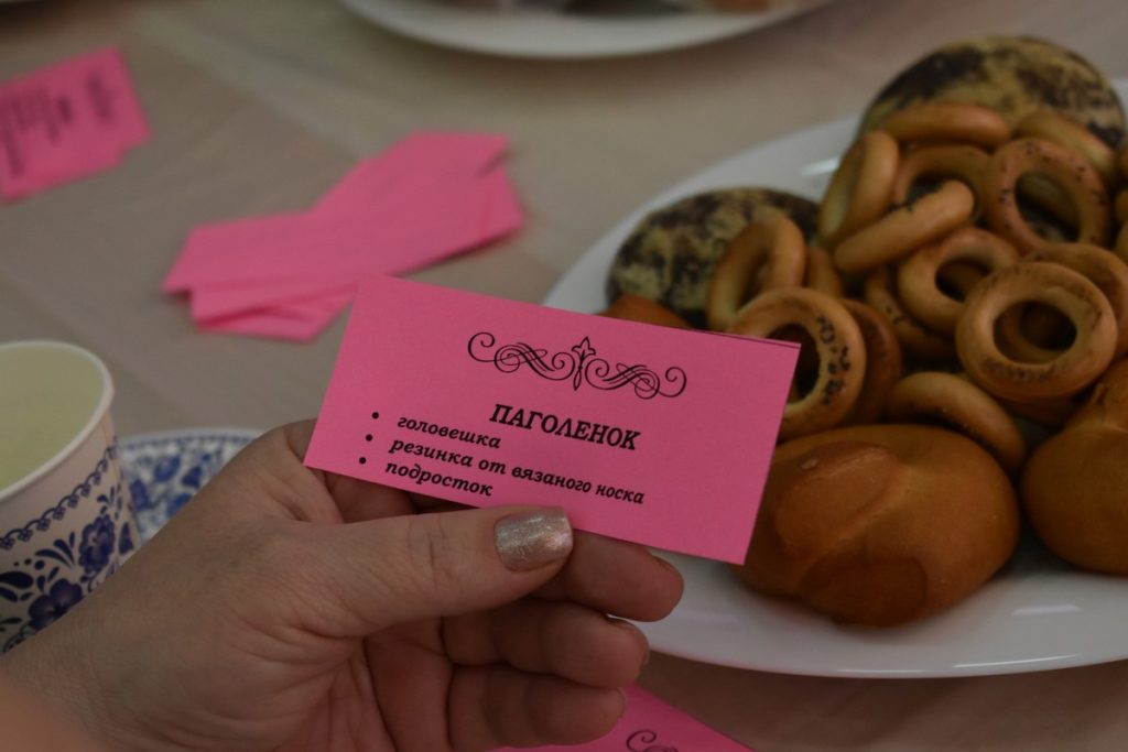 Ольга Енгалычева продемонстрировала знание своего предмета, предложив угадать значение устаревших слов Кадомского округа. Так, жюри и гости узнали, что незамужнюю женщину в деревне Ивановка называли «векша». В Кадоме говорили, что подлещик – это «шарманчик», а «говорушками» в Заулках было принято называть грибы опята. Поллитровую банку в деревне Симушки называли «козлинка», а в селе Восход слово «меняльник» подразумевало полотенце для молодых.