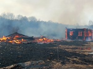 Огонь уничтожил шесть нежилых строений. Угрозы распространения пожара на ближайший лесной массив нет.