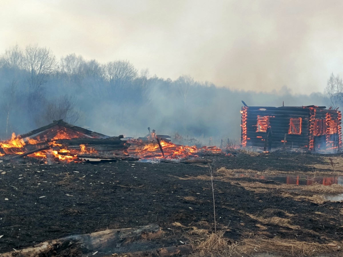 Огонь уничтожил шесть нежилых строений. Угрозы распространения пожара на ближайший лесной массив нет.