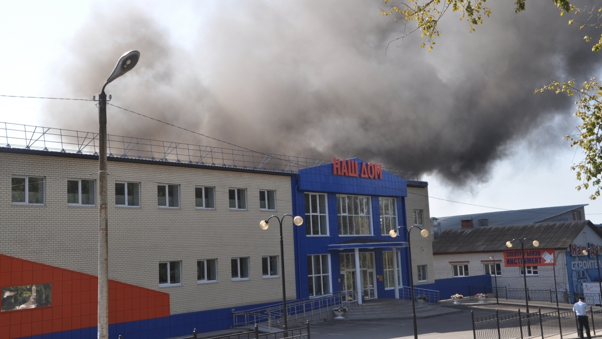 В Касимове горит склад крупного строительного магазина. По городу распространяется едкий запах жжённого пластика.