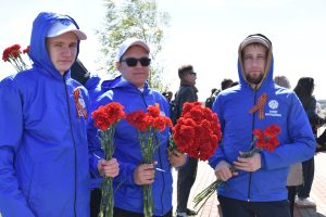 Память погибших героев почтили минутой молчания, к стеле возложили живые цветы.