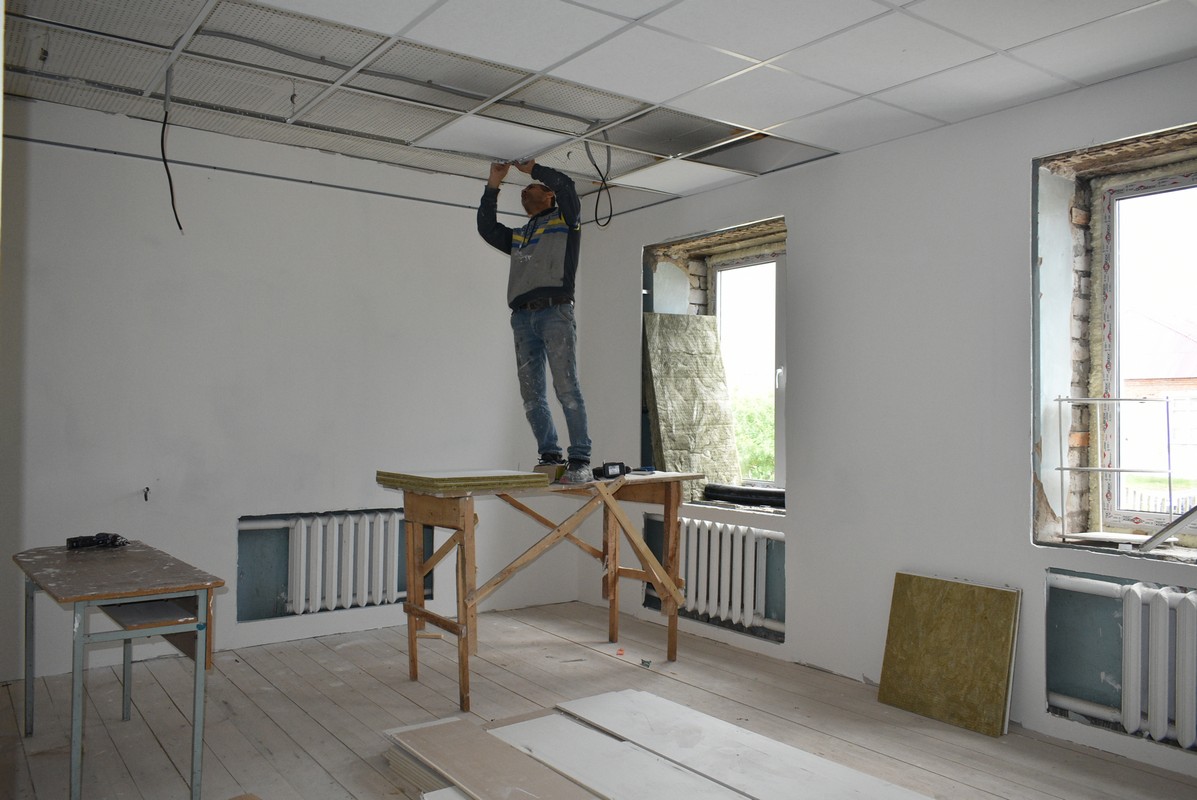 Внутри здания сделают капитальный ремонт. Уже сделали систему водоснабжения и освещения, установили новые окна, рабочие доделывают стены и пол. Объект планируют сдать до 15 июля.