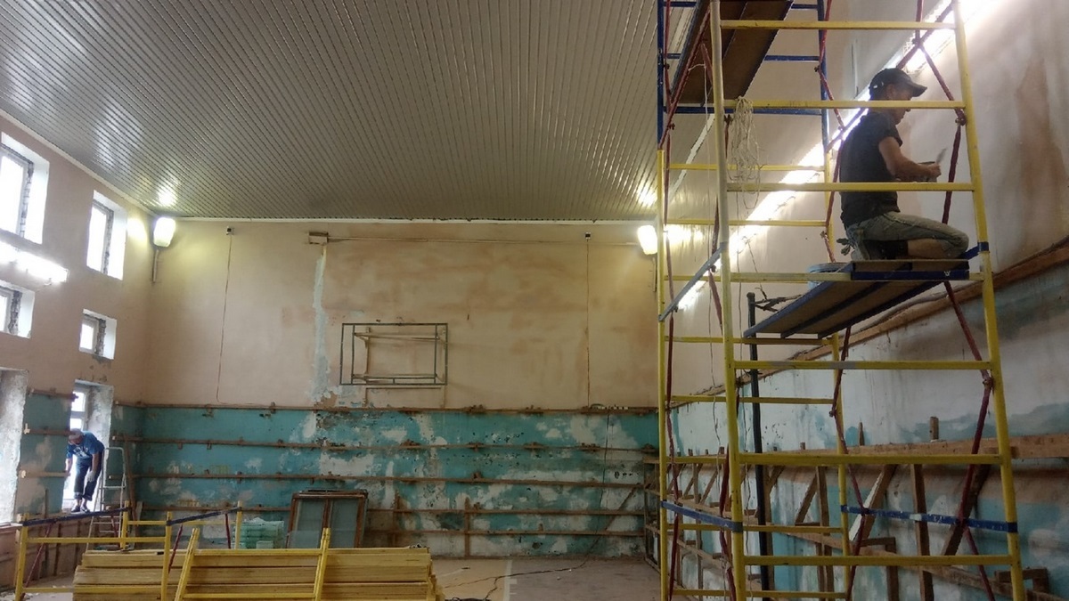 «Ученики школы № 1 получат к началу учебного года отремонтированный спортзал. Уже вставили пластиковые окна. Они позволят сохранить тепло, да и света будет больше. Подрядчик обошьет нижнюю часть стен вагонкой и проведет косметический ремонт всего помещения».