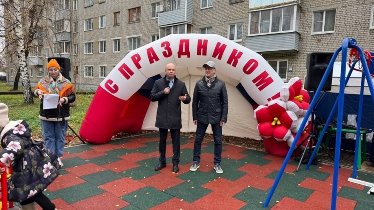 Площадку установили во дворе дома №33, а открыли в День народного единства. Детей развлекали аниматоры. Площадка безопасна, ее установили на травмобезопасном резиновом покрытии, среди оборудования – игровой комплекс с горкой, качели и карусель.