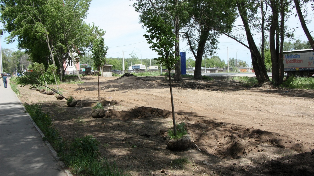 Саженцы для посадки привезли из питомника. Возраст саженцев – 4,5 года, они имеют 100% приживаемость. В дальнейшем сюда привезут 300 кубических метров плодородного грунта, на котором высадят газонную траву.