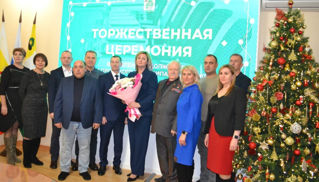 Председатель Пронской окружной Думы Вадим Фраевич прочитал решение, согласно которому, с 25 декабря Ольга Финякина официально вступает в должность главы округа.