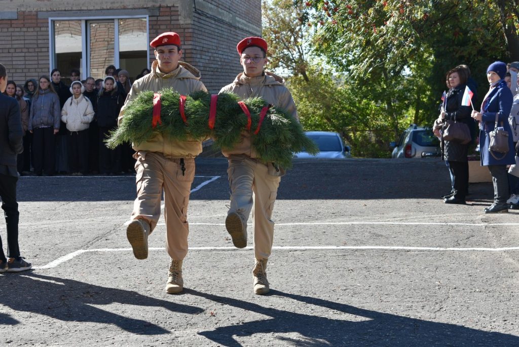 На митинге присутствовал конвой, который доставляет груз солдатам специальной военной операции – Александра Максюшина, Роман Агапкин, Дмитрий Голубиевский. Ребята передали благодарность школе за гуманитарную помощь от наших солдат. Память погибших бойцов СВО почтили минутой молчания и возложили цветы к мемориалу.