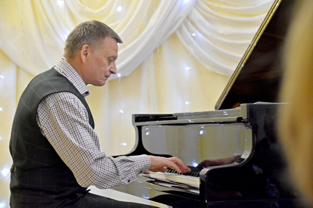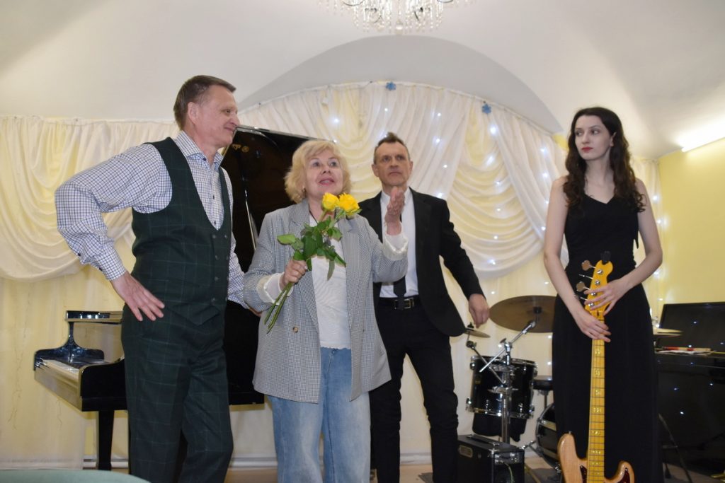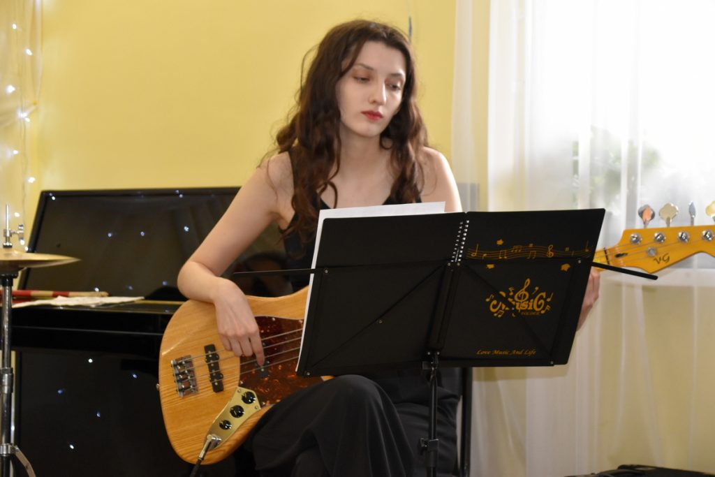 На сцене музыкалки выступило трио Геннадия Филина в составе: Геннадий Филин (руководитель коллектива, фортепиано), Вячеслав Сергеев (барабаны), Полина Середа (бас-гитара).
