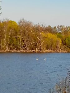 «В этом году красивая парочка прилетела к нам снова. Мы ходили гулять и наблюдали за ними. Увидев нас, птицы отплыли подальше, остерегаются. Интересно было посмотреть, как они купаются, чистят свои перышки. Когда отдыхали, прятали головы под крыло».