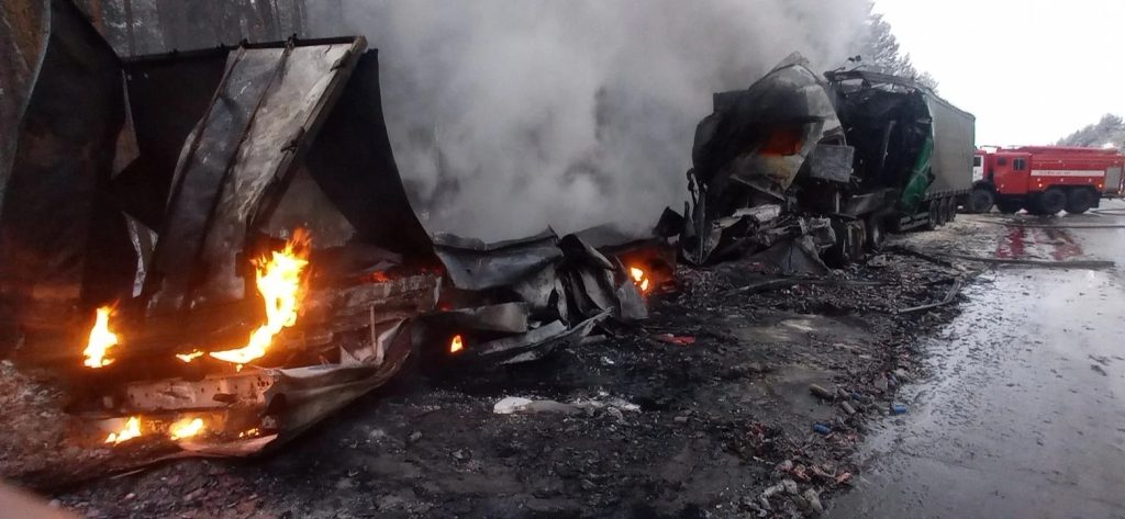 В Путятинском округе после аварии загорелся груз одного из автомобилей – литий-ионные батарейки