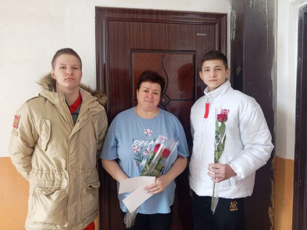 В предпраздничные дни, 5 и 6 марта, юнармейцы и активисты «Движения первых» школ Путятинского округа поздравляют матерей и жен участников специальной военной операции с наступающим Международным женским днем.