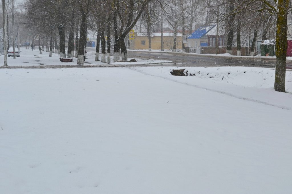 В понедельник утром улицы и дворы окружного центра покрылись белоснежным одеялом, создавая зимнюю атмосферу.