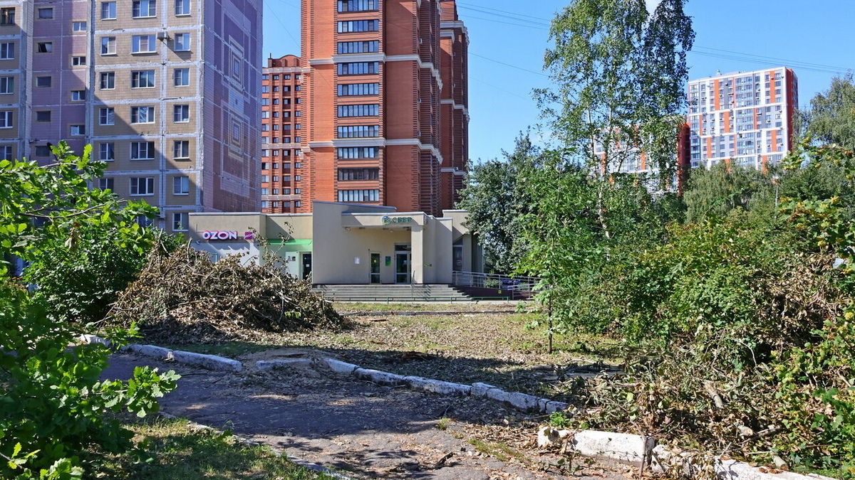На участке убрали два аварийных дерева и поросль американского клена, вывозят спиленные ветки и стволы. На расчищенной территории поставят скамейки и ограждение, разобьют клумбы и высадят зеленую изгородь, установят бордюры.